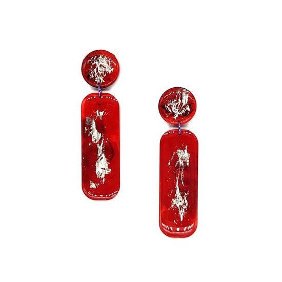 These ONE OFF pinky-purple earrings are in-laid with smears of holographic foil, and have a glossy finish. Pair them with something with a similarly shiny finish, and a berry pout, for a date night.